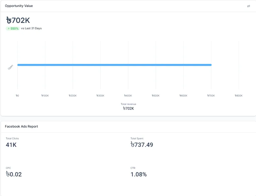 This is what I got one of my clients, over 700k during the last 31 days, in pipeline value.